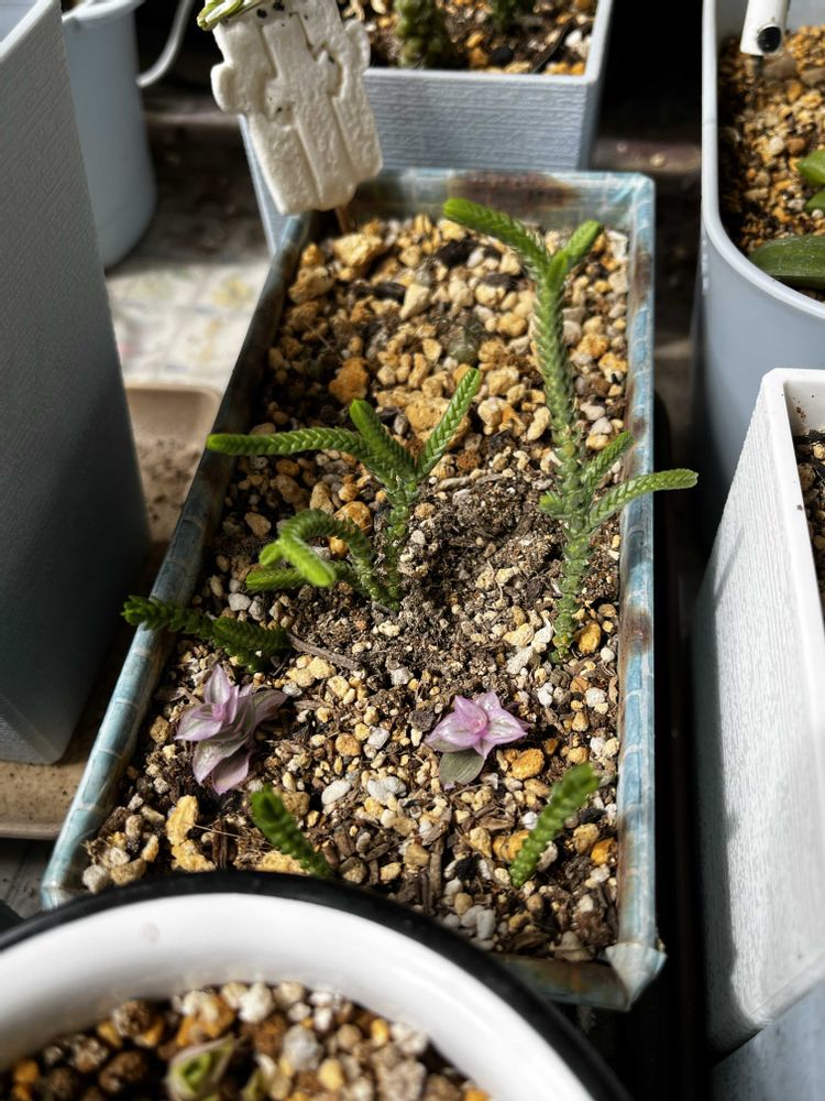 2025年4月にネットでたにたのさんの苗を購入した時におまけでついてきた名無しのエケベリアが面白く育っているので、成長記録を作りました。 この子の名前ご存知でしたら、ぜひ教えてください🙏