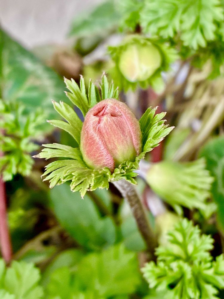 アネモネの蕾が色づいてきました。
