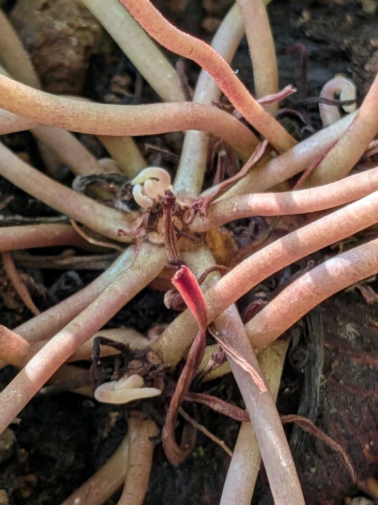 老眼のため肉眼ではわからず、スマホのカメラで拡大して確認🥸たしかに新芽👍