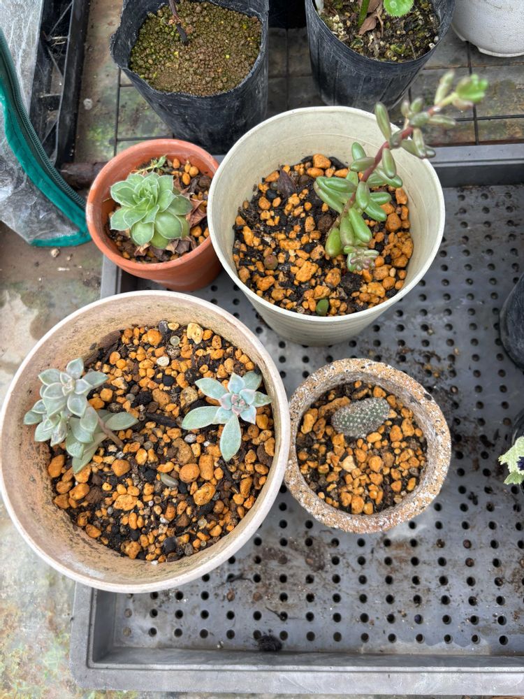 娘がお正月の頃、多肉&サボテンの寄せ植え教室で作ってきてずっと出窓に置いてありましたが、今日思い切って全部バラしてひとつずつ植えてみました🪴うまく根付いてくれるでしょうか?名前も何もわかりません😕誰かご存知の方いましたら教えて頂きたいのですが……………🪴🪴