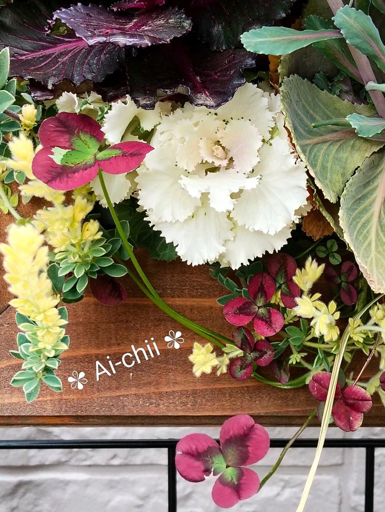 ハボタン、左上のお花がちょっと伸びすぎました😂