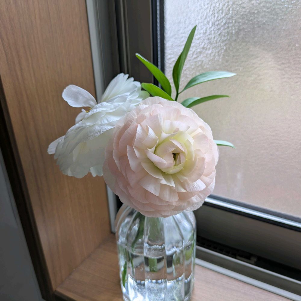 ⑤枚目はスーパーでゲットしたお値引のラナンキュラス🤍🩷😊