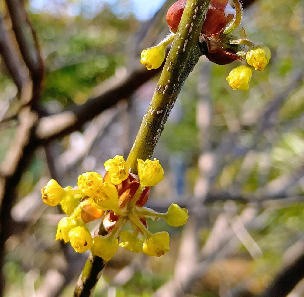 アブラチャンと同じクスノキ科ですがお花には花柄がなく、枝に直接咲いています🌱