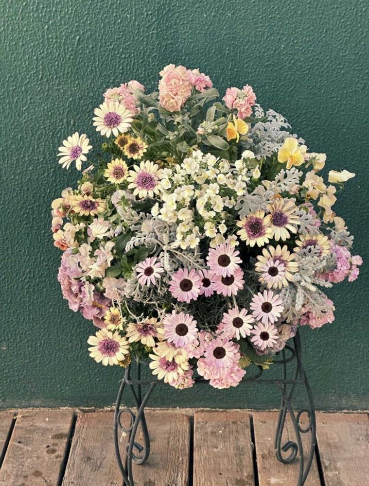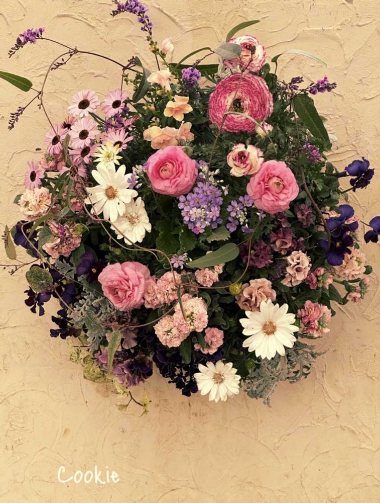 春色!ピンク色! 春爛漫のハンギング、素敵です₊˚⊹ 𐦍༘⋆₊ ⊹こんなに色んな種類のお花を集めてのハンギング、見応えありますね˚·༊˚·༊˚·༊