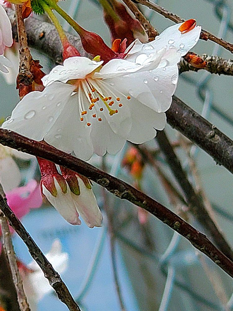 雨に濡れた桜が綺麗ですね〜♪