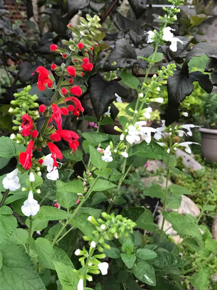 おはようございます!!サルビア紅白と淡いピンク色も咲くなんて素敵ですね〜😆🎶