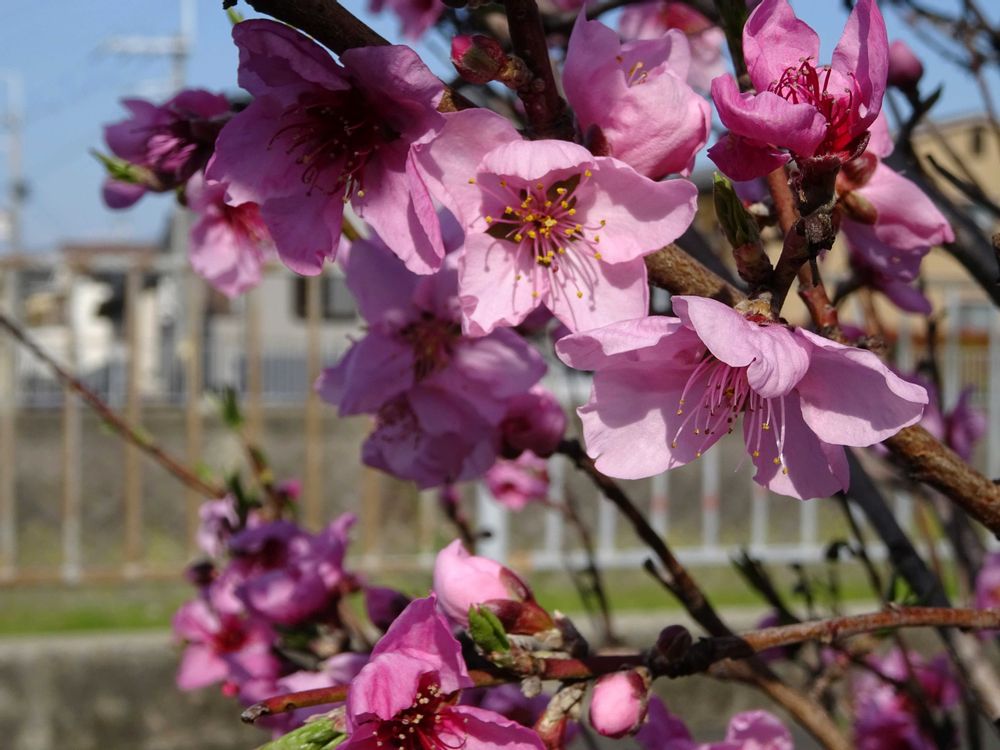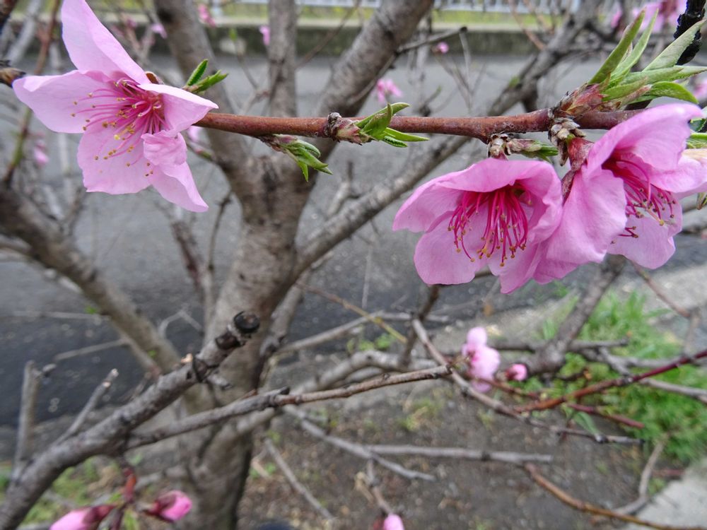 散歩の途中道端の植え込みの中にハナモモが綺麗に咲いていました🌸🌸🌸