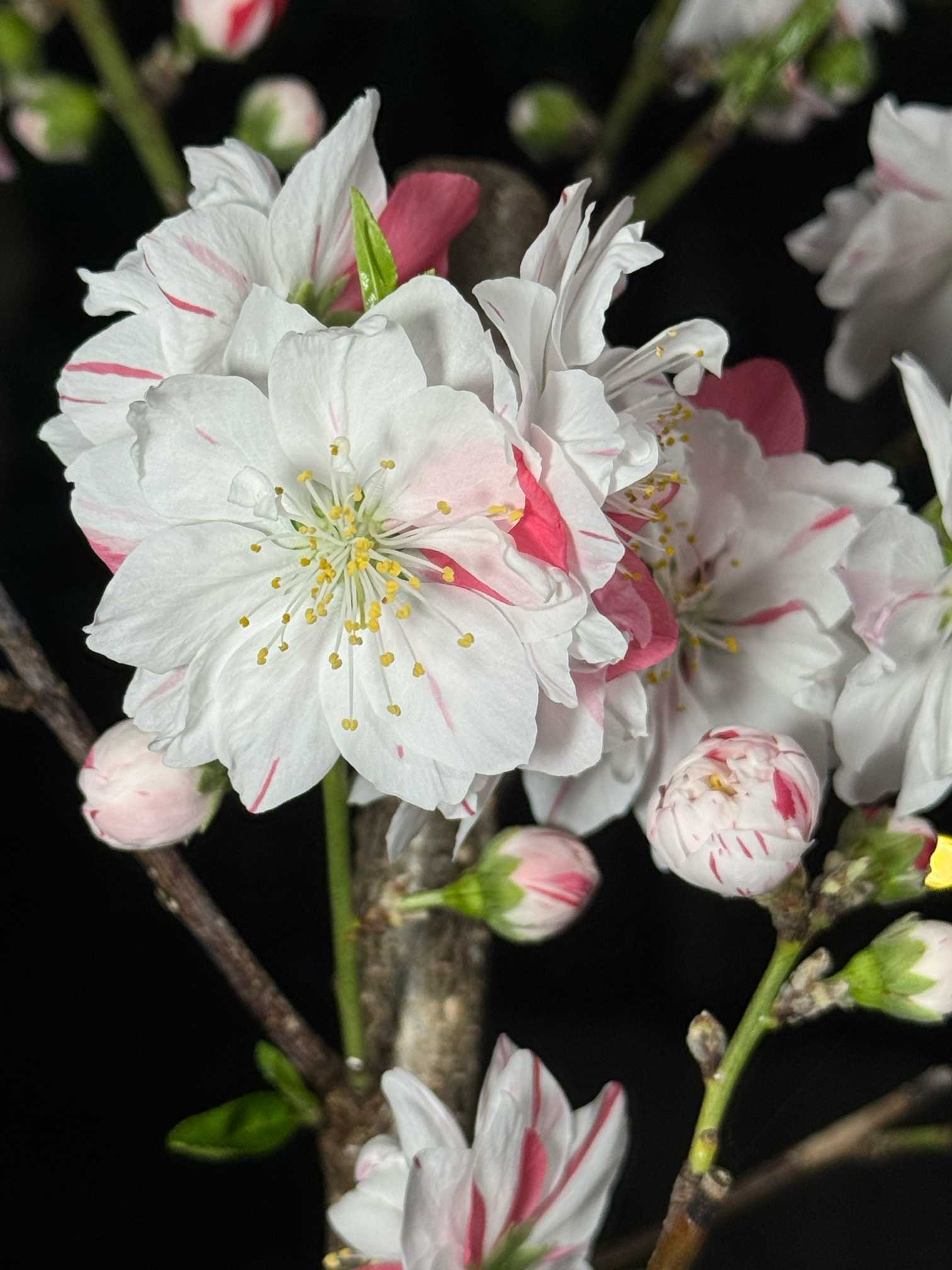 花桃。庭でライトアップ。