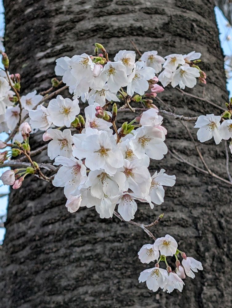 太い木をバックの桜が素敵に撮れていますね🙋💮 💮💮💮