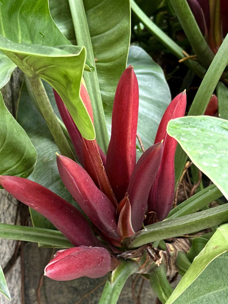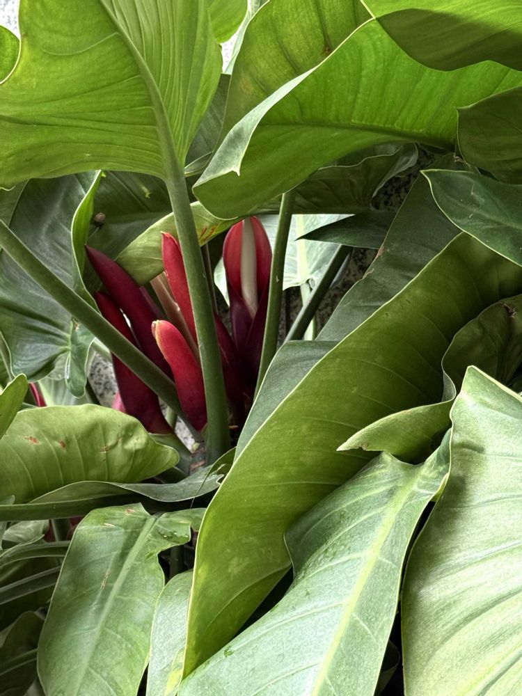 フィロデンドロンというそうだけど、赤いのは初めて見た〜♥️♥️♥️