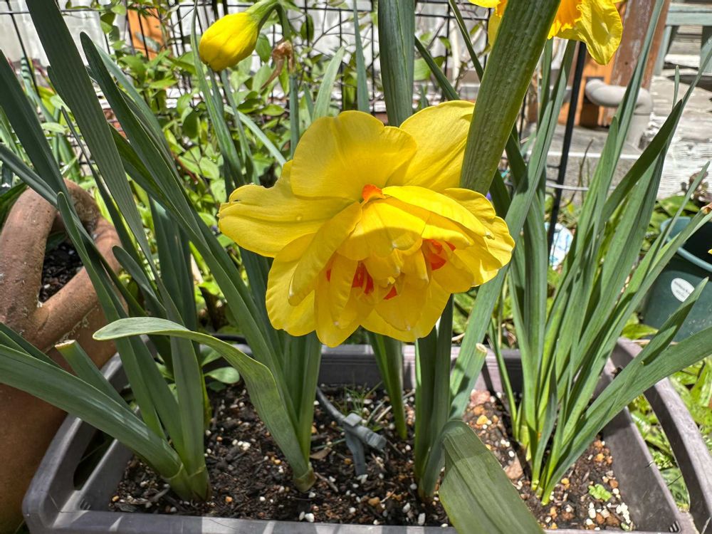 別の色のゴージャスな水仙が咲きました。今日、燕の飛来を確認しました!