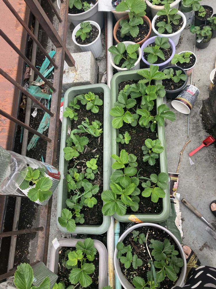 みんなバリバリランナー伸ばしてますあったかいのかな?葉をちぎりすぎて花芽作れなかったのかな?肥料が多かったのかな?とか色々悩みつつ、!葉っぱも手のひらくらい大きくなりました。