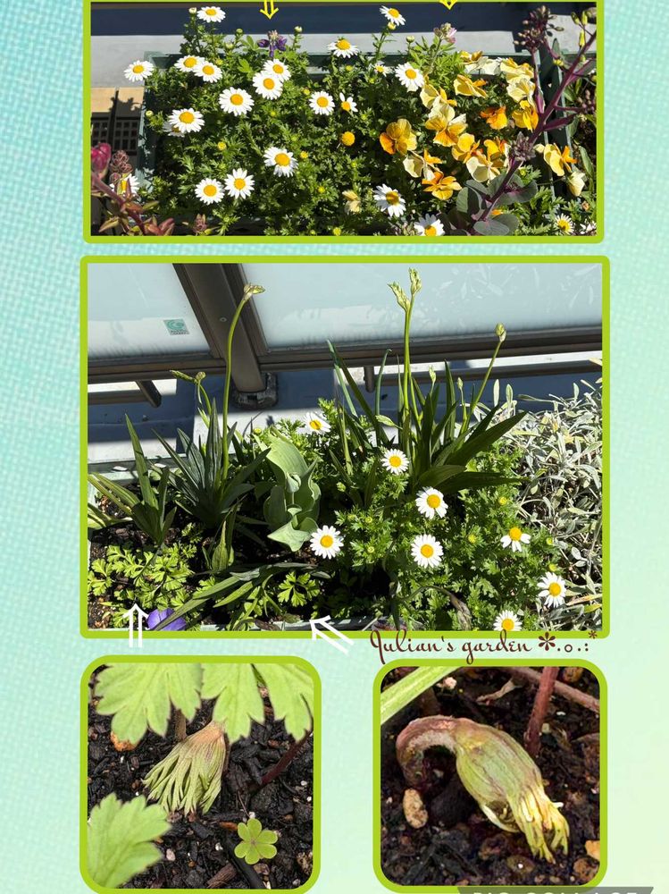 真ん中のプランターは3~4年前のフリージアと昨年のチューリップと花友さんから頂いたアネモネの球根から蕾らしき子が出てきました😉💝
