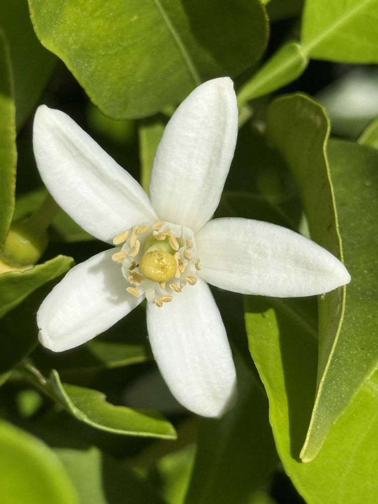 Citrus reticulata/Citrus. Rutaceae. Sapindales. Magnoliopshida. Tracheopyhta Commonly called/The mandarin orange Native to/Southeast Asia Symbolism/Wealth. Good fortune. Happiness *Genus of about 16 species of evergreen *Rounded sometimes spiny, large shrub or small tree with ovate to lance-shaped, deep green leaves, 1 1/4- 1 3/4 in(3-4 cm)a cross short racemes *The first mandarins reached England in 1805, imported from Canton, and were introduced to the Mediterranean(Sicily) by 1810. Photographed 3/26 11:12am 2026 Posted 3/27(Friday) 11:58am 2026
