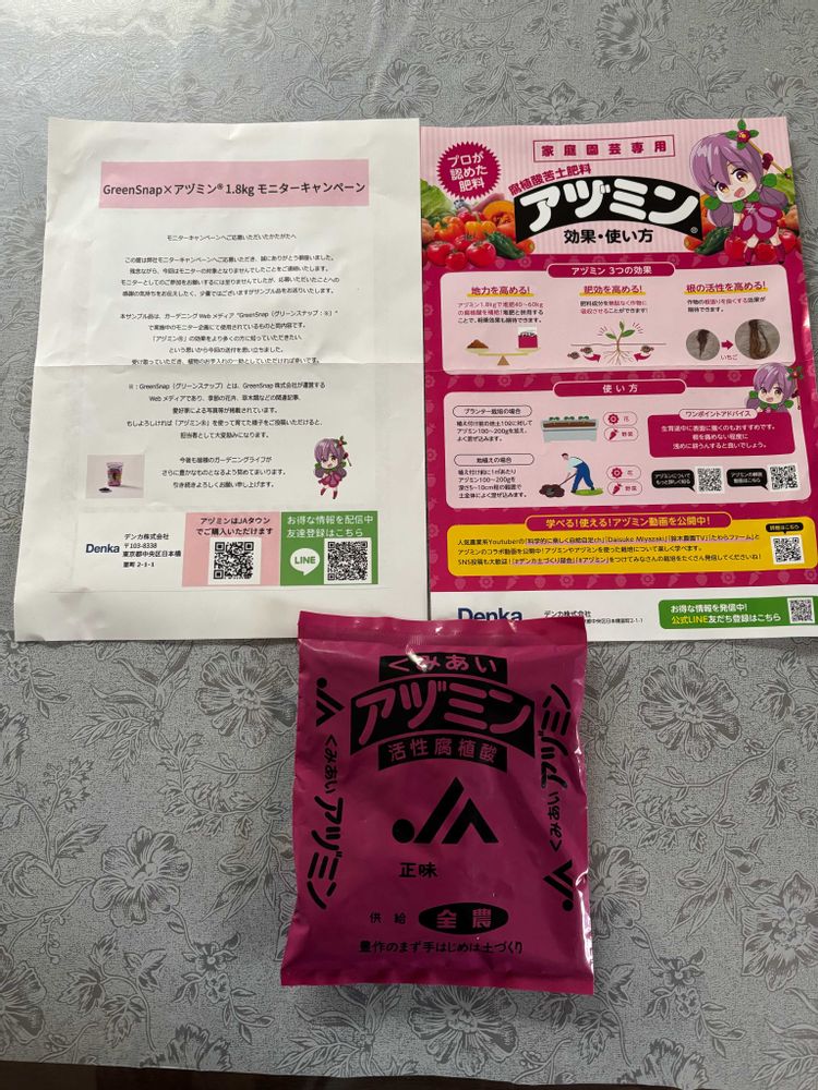 いただいたサンプル品は、200gですので、培土14ℓに1袋混ぜ込んで鉢植えなどに使用したいと思います。