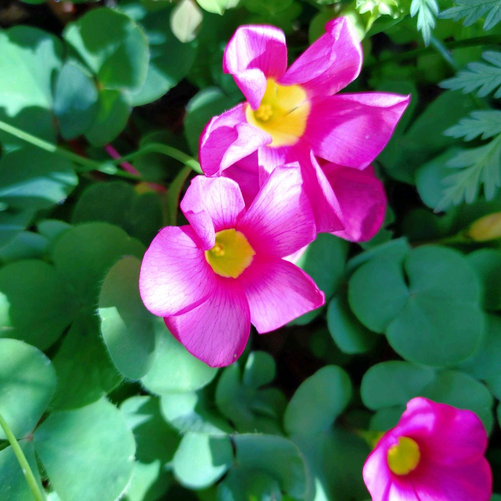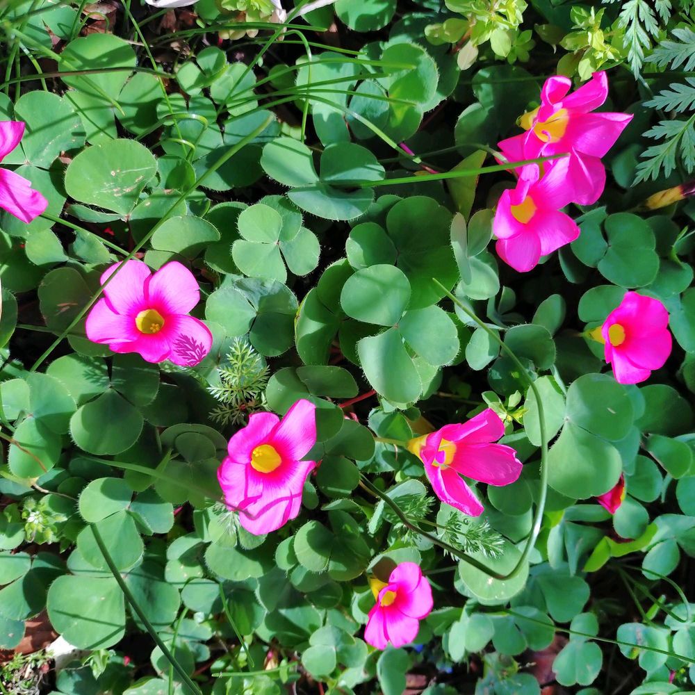 ③④庭にはびこる濃いピンクのオキザリス