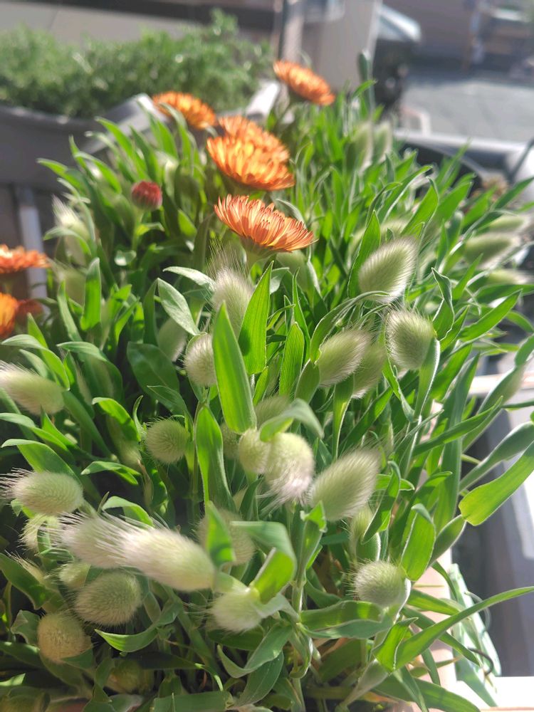 4️⃣ベランダのラグラスバニーテールの穂が出てきました。コーヒークリームも頑張って咲いてます💚🧡💚