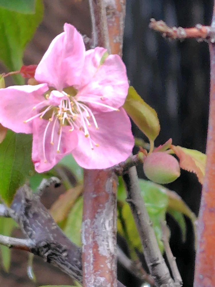 5️⃣紅梅…1月にたくさん咲いて楽しませてくれた紅梅に薄いピンクの花が咲いてます。隣りには小さな実も…