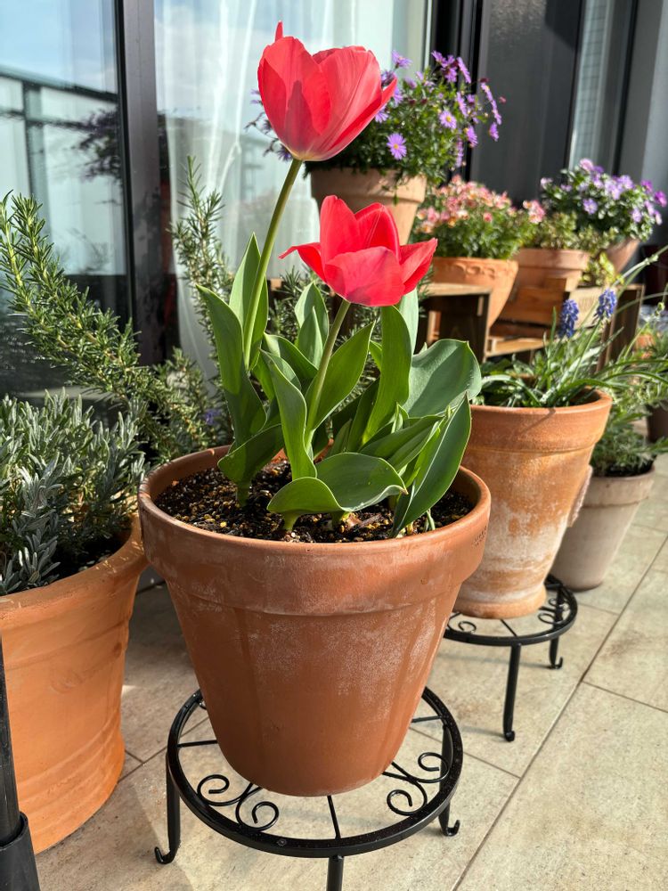 お家のチューリップ🌷も咲きました🩷でも、他の球根の花芽の成長が遅い…早く背伸びして咲いてほしいなぁ…