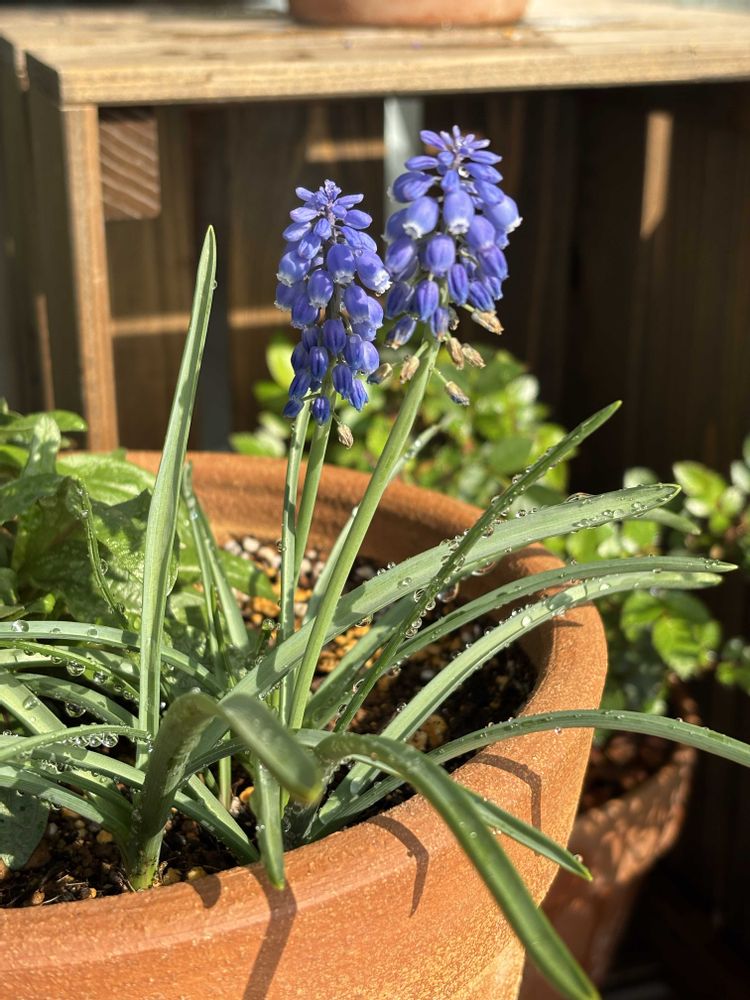 ムスカリ3本のうち、1本なぜか花芽が折れてて(鳥にやられた?)悲しい…🥲でもムスカリさん可愛い💕