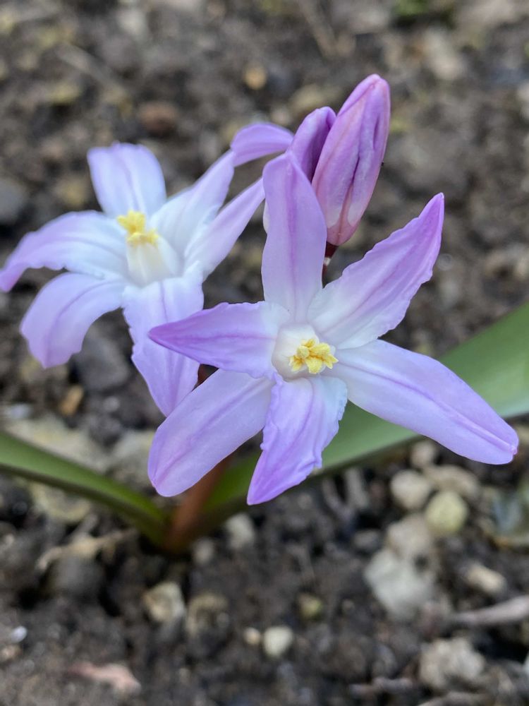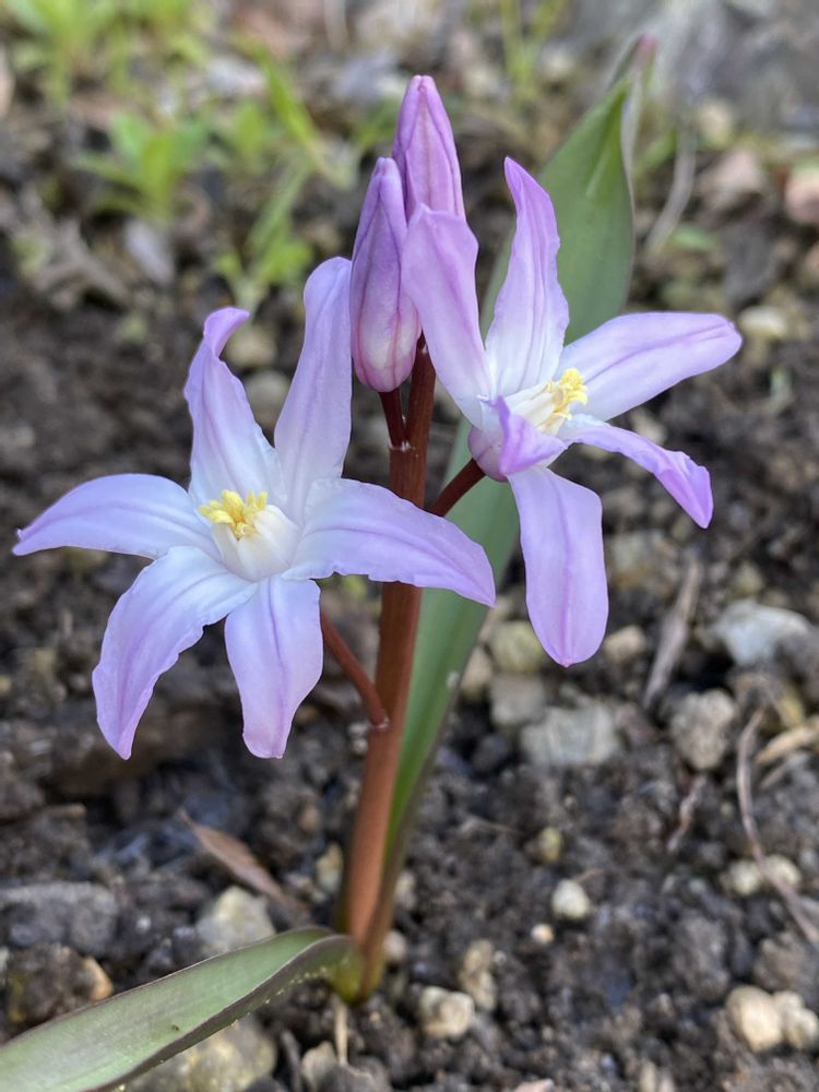 今年もチオノドクサが咲き出しました。この冬は雪が少なかったためか、去年より約1週間早い開花です。