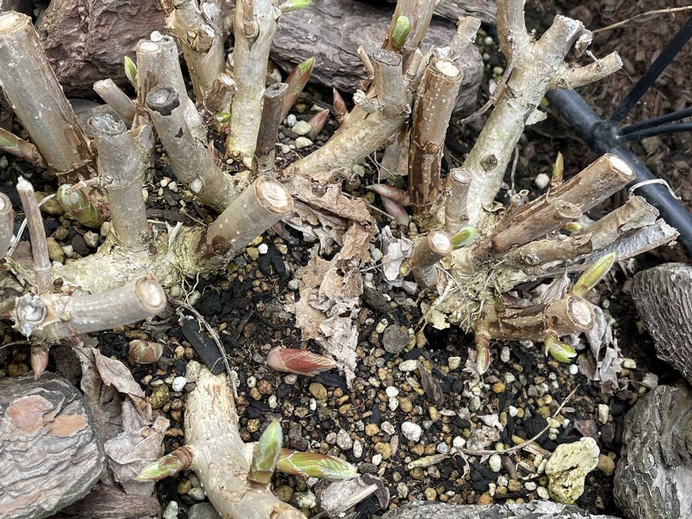 アナベルの芽が緑になってました🌱