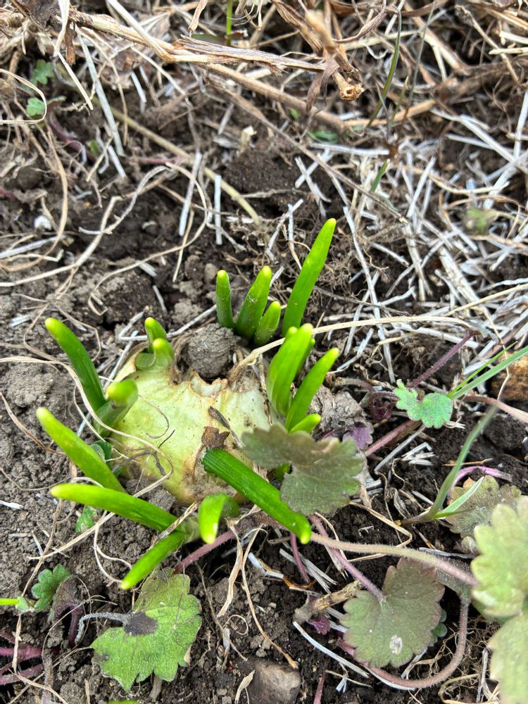 3枚目👀『何じゃこりゃ❓❗️』 球根から新芽がニョキニョキ
