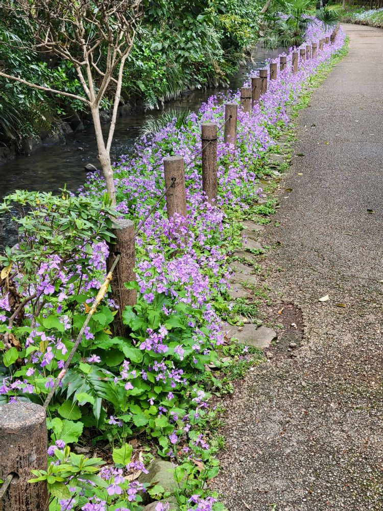 帷子川親水緑道には、いまが盛りに咲いています💜💜