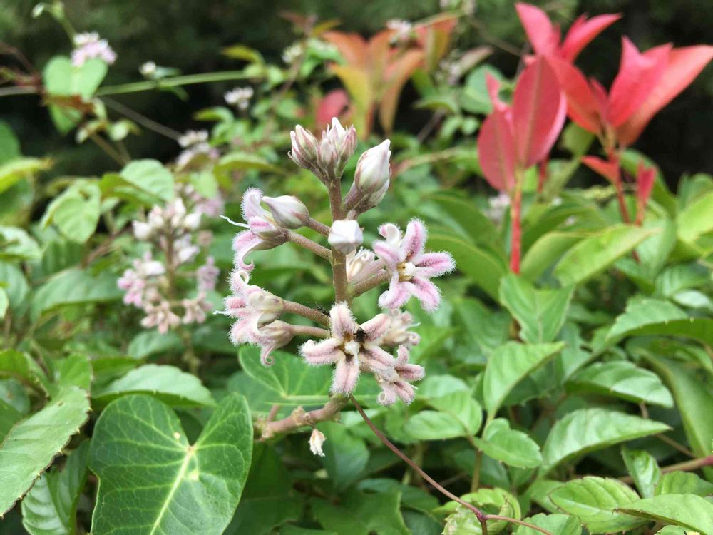 種が出来るのを待っているうちに、植込みに絡んでるいたガガイモは植木の剪定の折に刈り取られていました。いつか種まで見れるといいな。