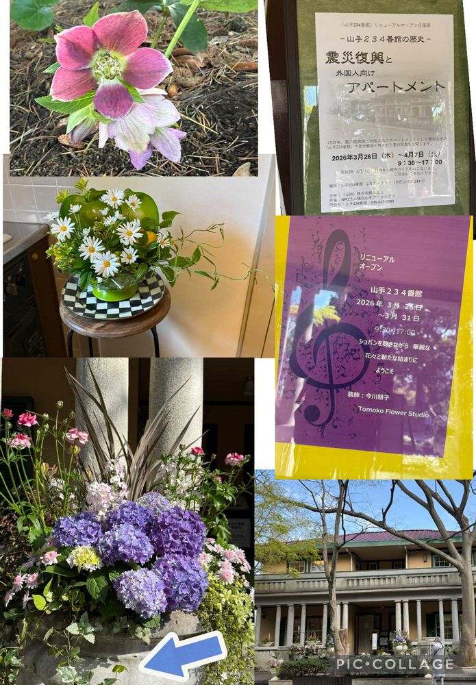 イギリス館に行く途中で寄った山手234番館はずっと改修工事中でしたがリニューアルしたようです。入り口にはアジサイと明日のお花のアイビー。中はチューリップ、マーガレット、ラナンキュラス、などカラフルなお花がいっぱいでとてもきれいでした。