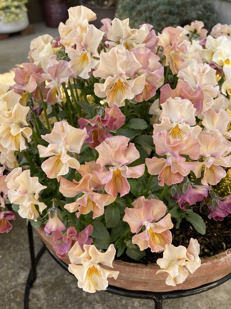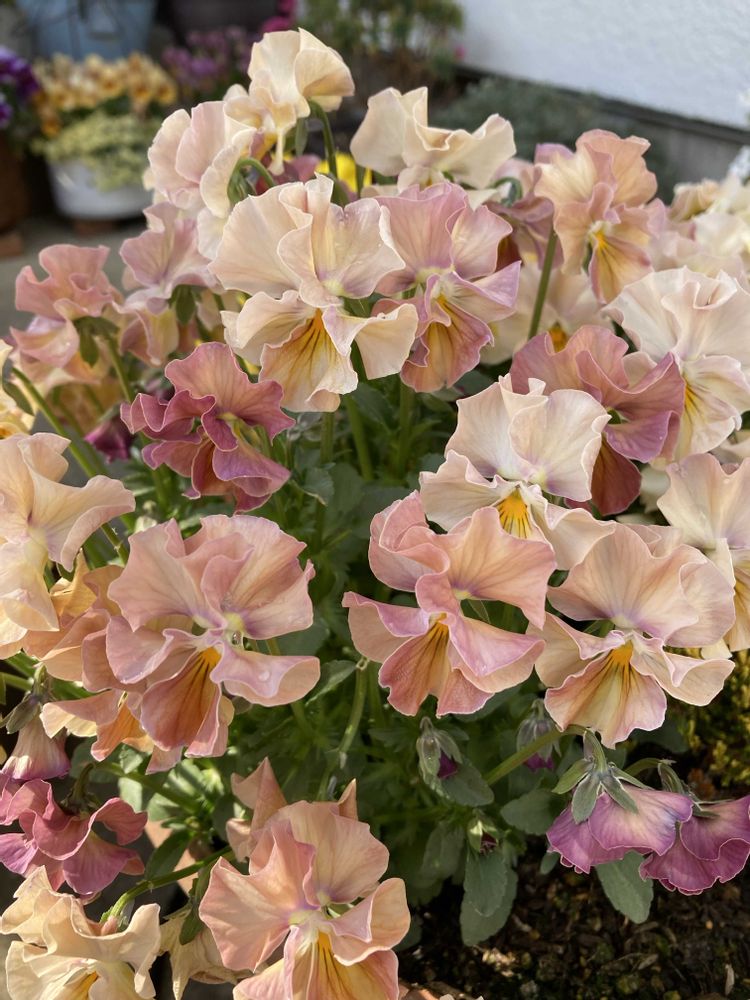 秋にお迎えしたビオラ「パスフリ 桜貝」の2株🌸🌸🌸