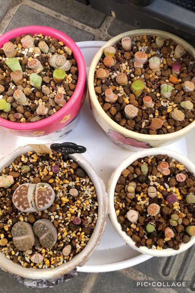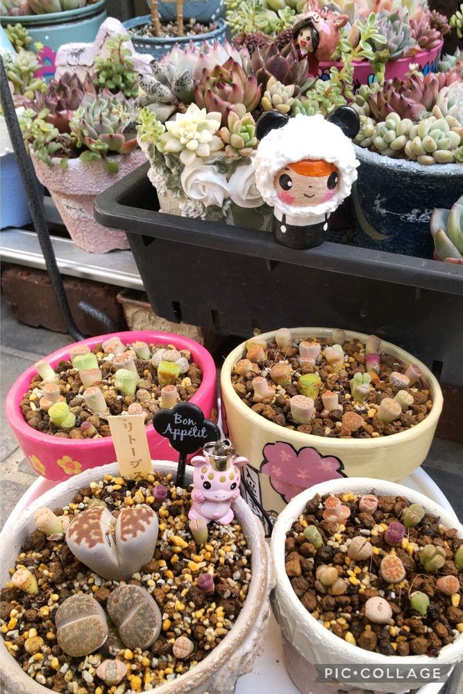 1枚目は、残ったミニリトープスをもう一鉢に植え替えました‼️(右下↘️)