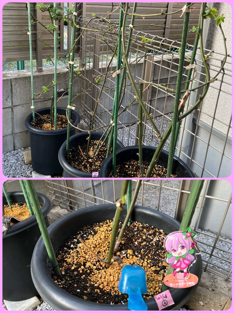 アヅミンを施用した鉢には、日付と🅰️を記したマステを貼付けて、経過を見守ります🙋🏻♀️