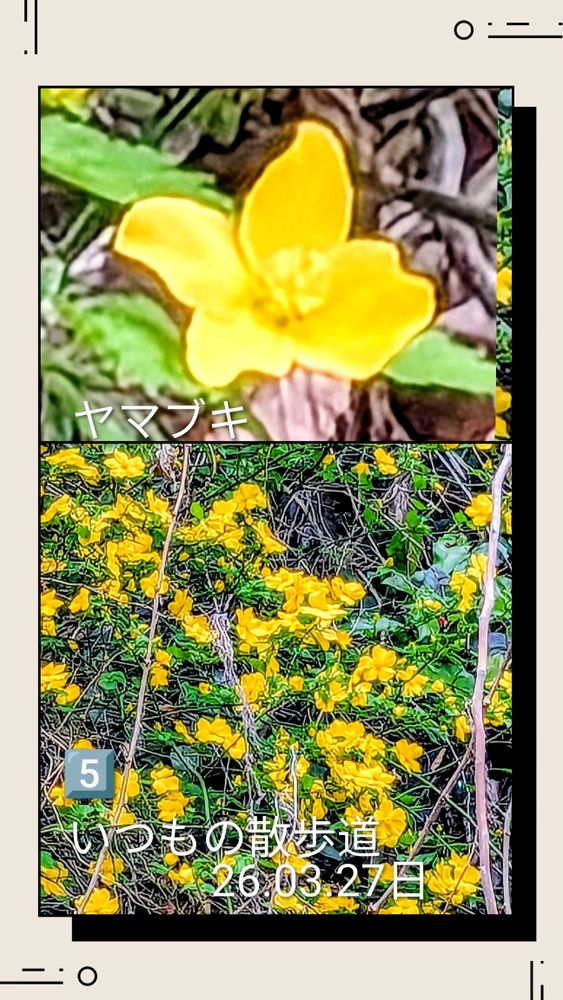 いつもの散歩道でヤマブキの花が咲いていました