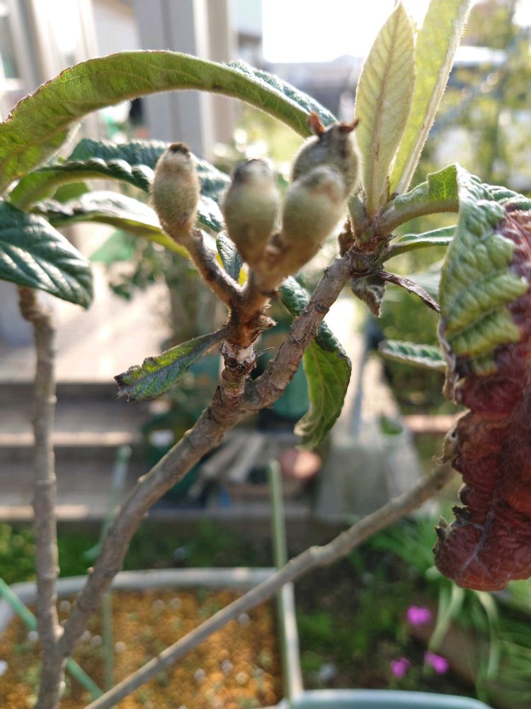 ビワ こちらは種まきから数年。一昨年から実がつきましたね。虫とかにやられて、さすがに今年は食べたい。鉢植えで剪定とか手入れが届かない。ぼちぼちやっていきます😊