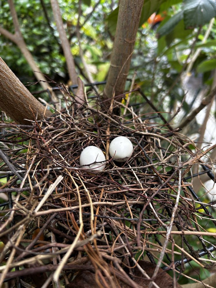 なんと❢鳩の巣が?卵も2個😳それはおめでたいことがいっぱいですね💖