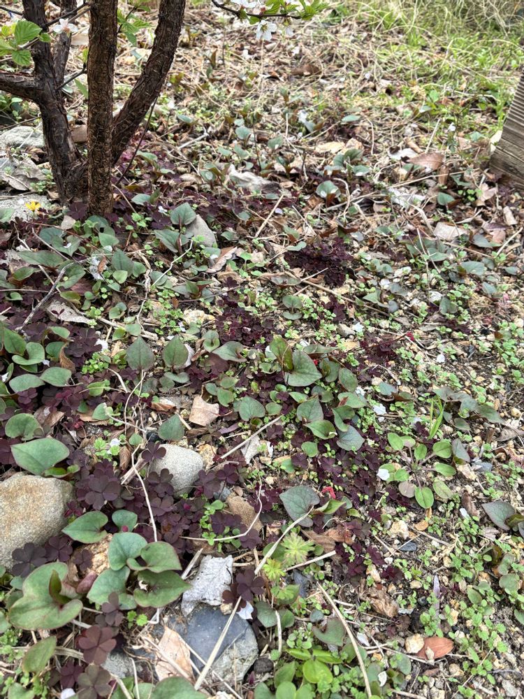 ⑤あっという間にドクダミがこんなに!今年は仏の座がめちゃくちゃ生えてる。種が飛んでるんだろうか🥲