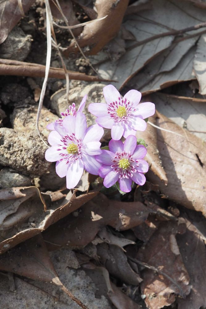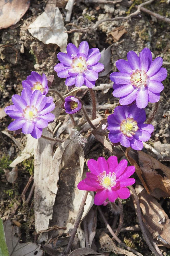 群生地を後に、展望台、自然探勝路をまわって下りてきました。その時の雪割草達です。