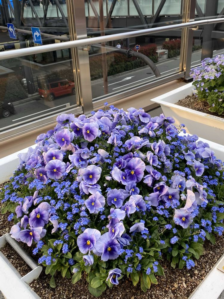梅田のこの花壇、いつもきれいな花がありますね🌸
