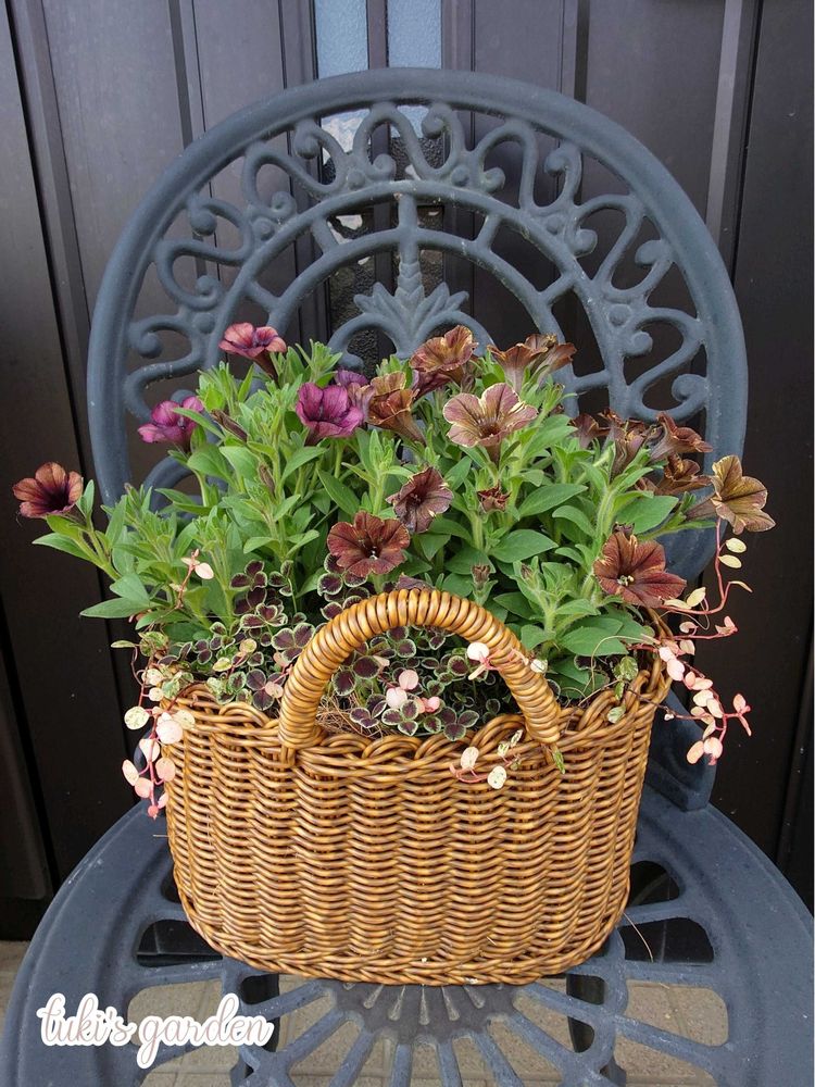 個性的なお花を引き立たせるため、葉っぱ🌿類は控えめに、鉢もナチュラルなバスケット🧺にしてみました🥰