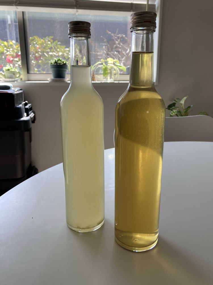 幼馴染より頂いた手作りのゆず酒とゆず酢、透き通った爽やかなお酒🥃とお酢本当美味です。