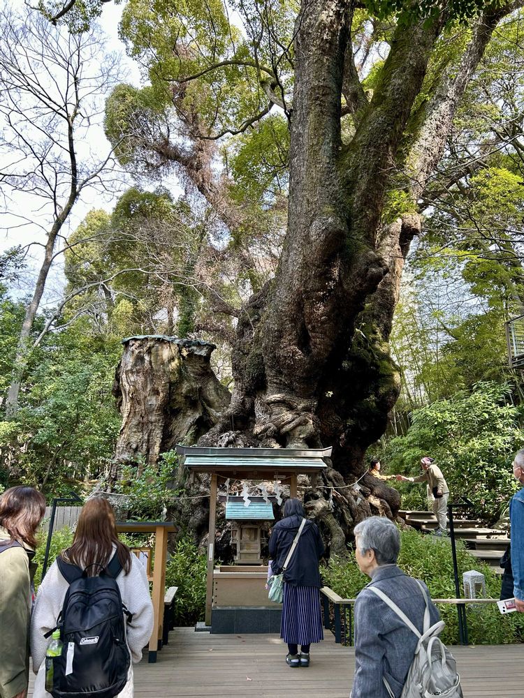 来宮神社の大楠は長寿のご利益。一周回ると3年伸びるらしい。午前中というのに駐車場は🚗満車の大盛況