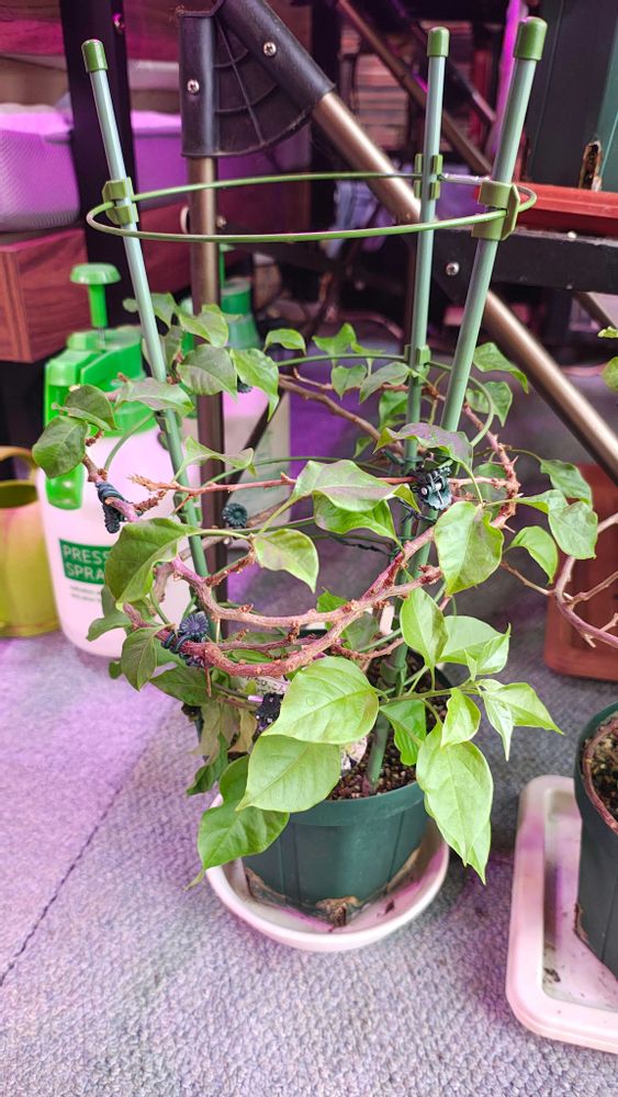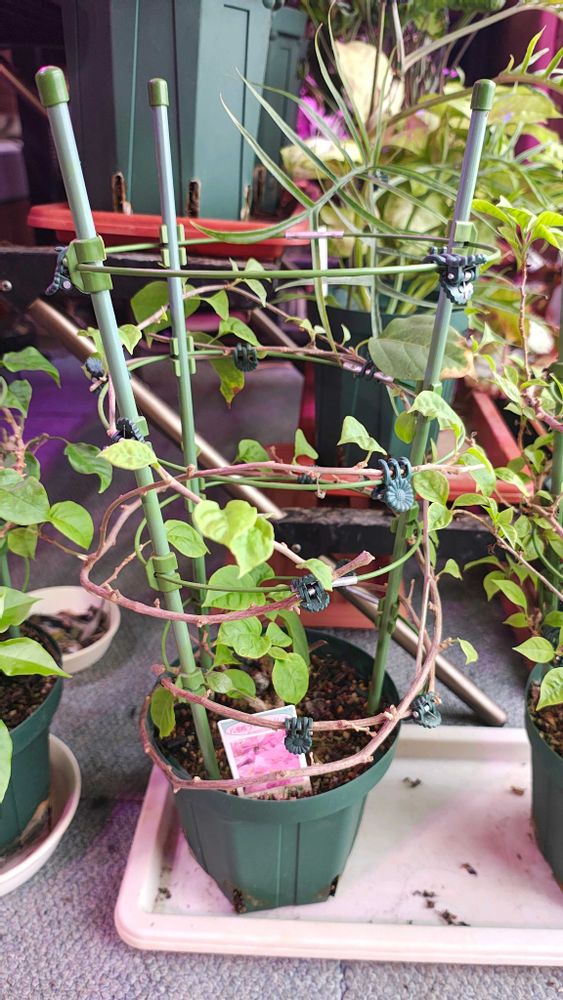 ヒスイカズラを育ててみたくなり、購入する前に先ずはネットで育て方を検索しました。 検索した結果、沖縄などの温かい地方での地植えや、植物園の開花の投稿は沢山有りましたが、鉢植えでの詳しい育て方は余り投稿されていませんでした😅 育てる事が出来るか分かりませんが、これもチャレンジと思い、取り敢えずメルカリで購入して見ました。 お迎えしたのは2025年6月の初めです。 植替えに適した時期にしました。 調べた結果、気難しいと出てたので、最初から少し大きめな子をお迎えしました。