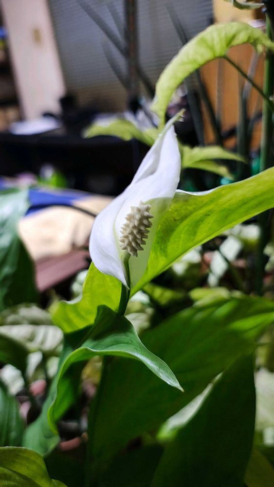 去年の夏咲かなかったスパティフィラムがポツンと1つだけ咲いたよ。