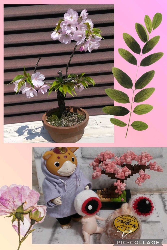 1枚目は、我が家の名無しの桜の盆栽。裏側が枯れて、バランス悪いまま、何とか毎年花を咲かせます。ずっと植え替えてないので、今年は植え替えようと思います💕