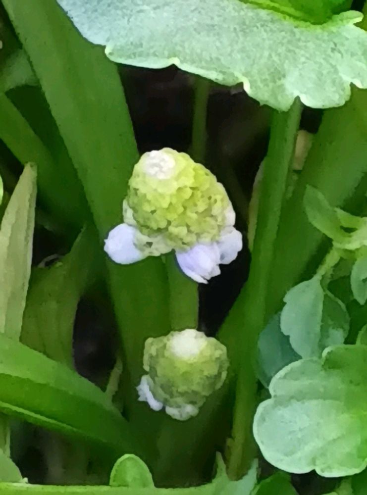 フリル咲きパンジーの中にムスカリを入れてたのが顔出してきてます。