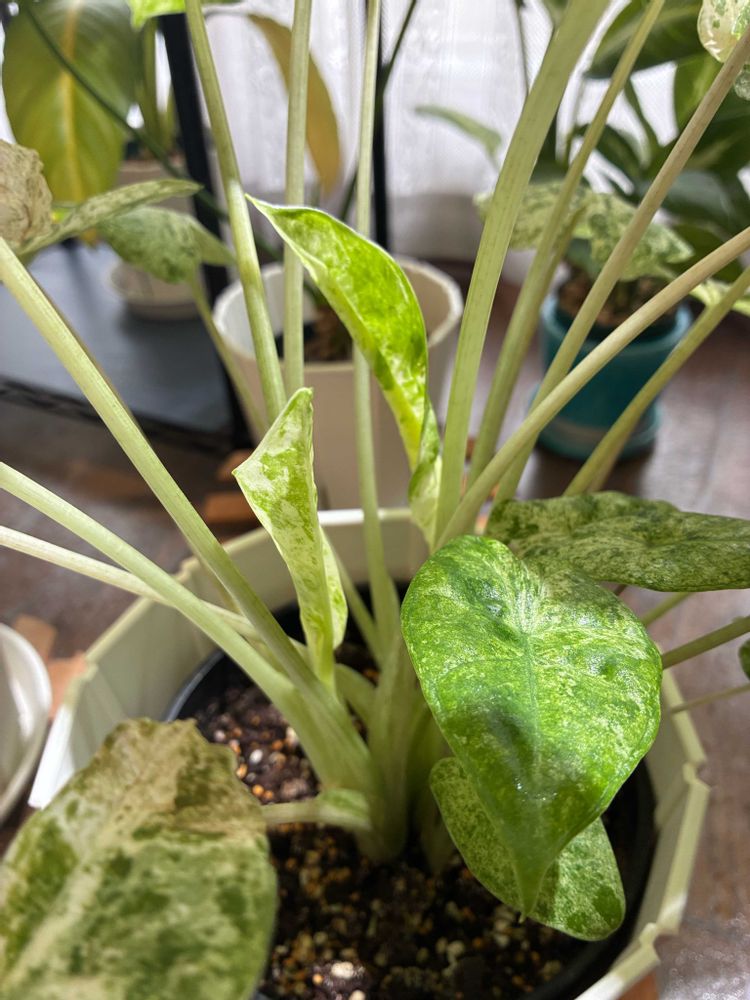 5:斑入りクワズイモ🍠にも2枚の新葉展開〜👍😁