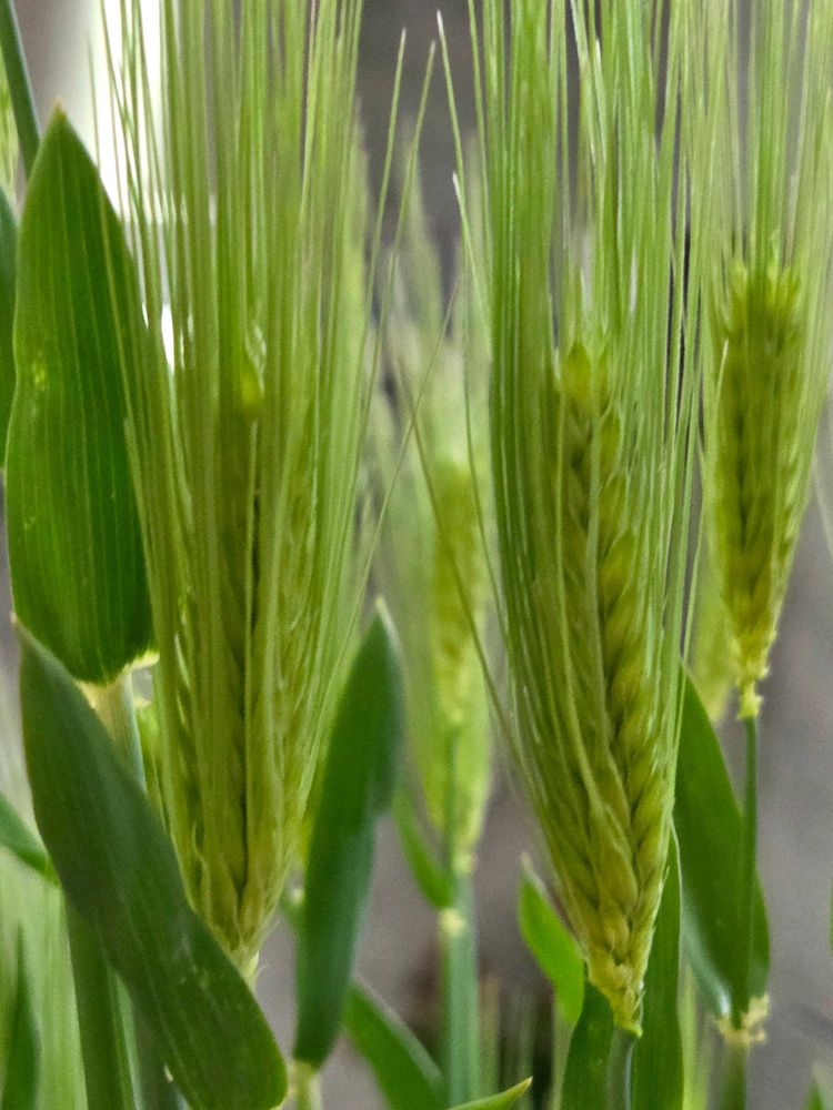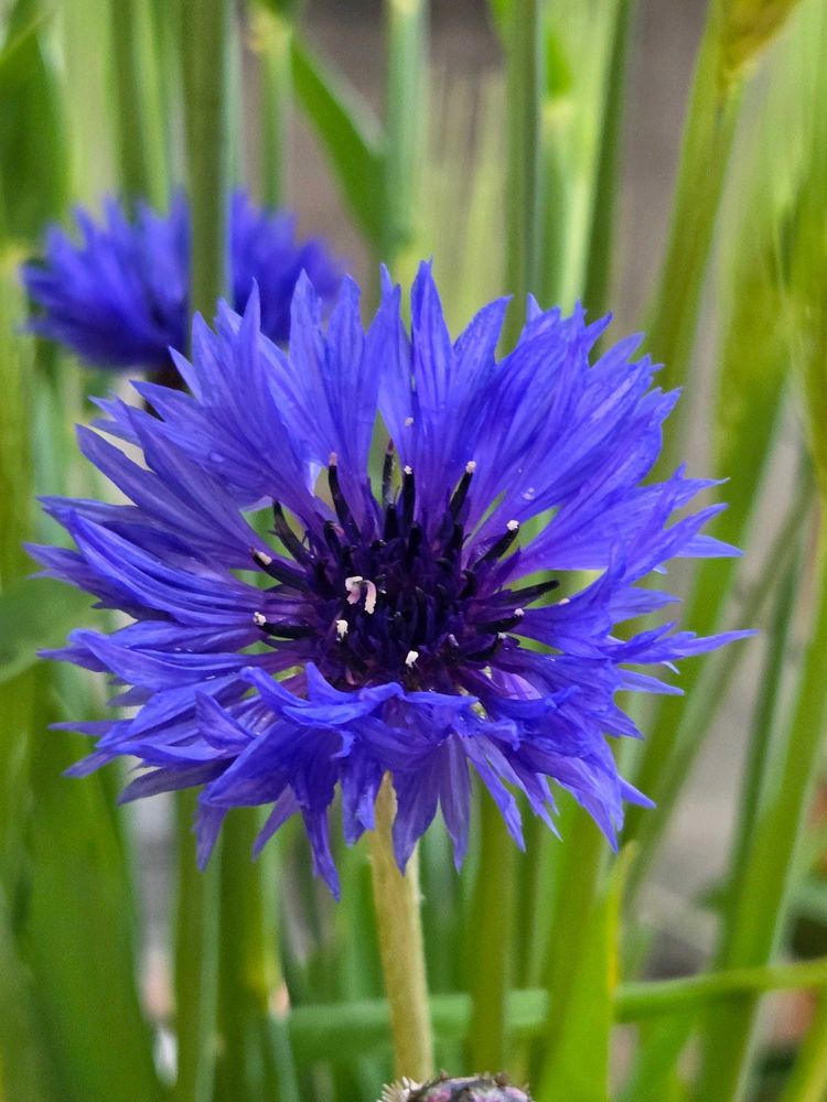 畑に咲いている麦とヤグルマギクでお出迎えしま~す。💚💚💜