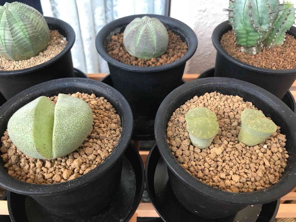 リトープスと帝玉、引越しました。これで全て鉢を揃え終わりました。やっぱり統一感は必要ですよね。