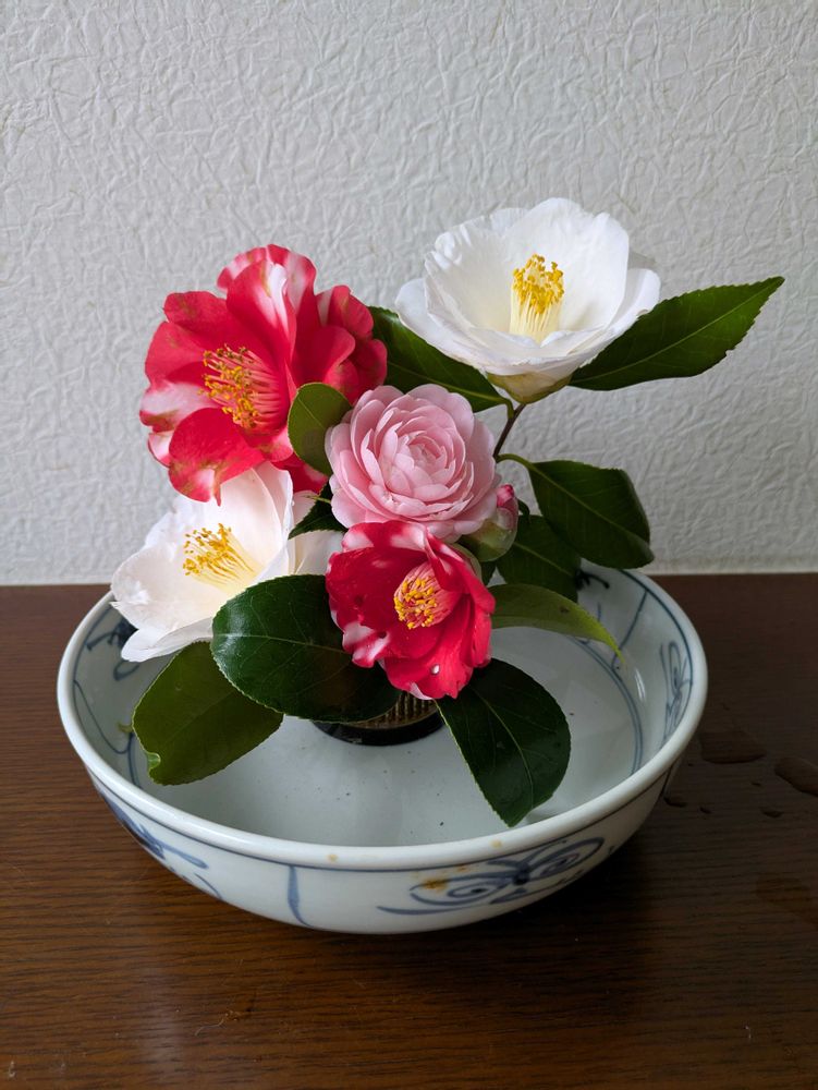 椿の花、色々での生け花ええね👏👏👏